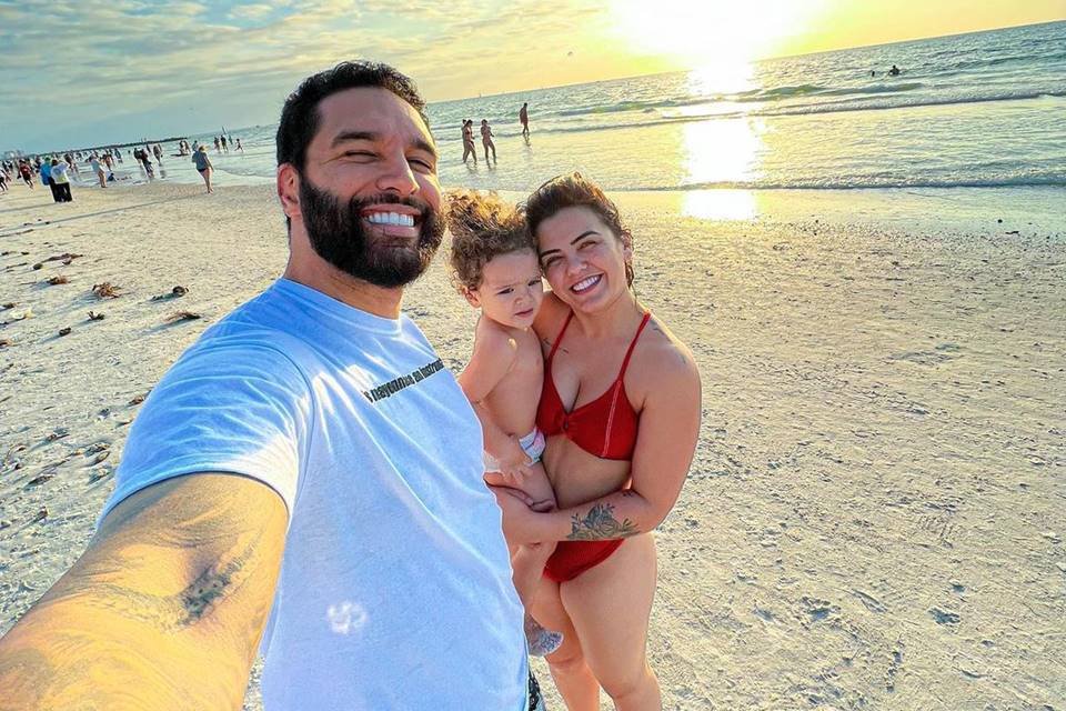 Lucas Lira e Sunaika Bruna ao lado do filho, Noah